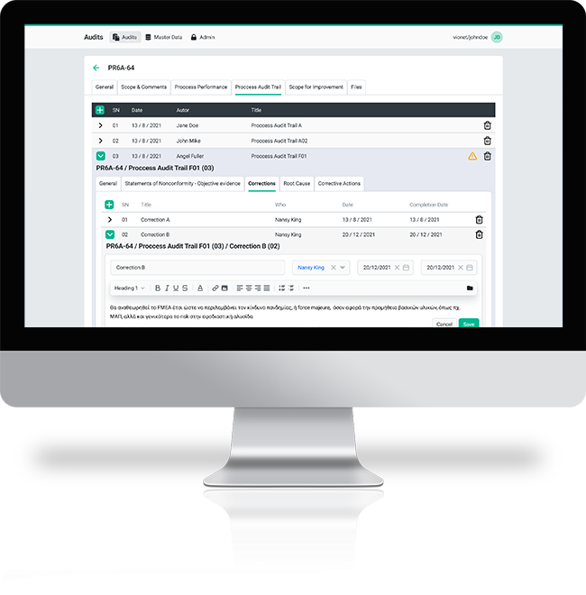 Προγραμματισμός & Παρακολούθηση Ελέγχων Ποιότητας.
